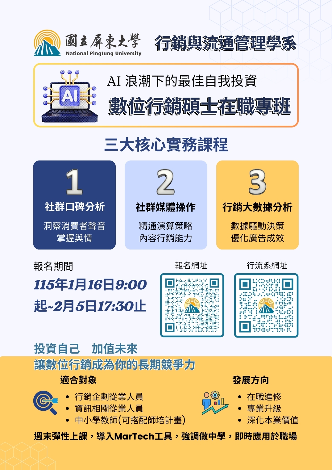 【招生】115學年度國立屏東大學行銷與流通管理學系數位行銷碩士在職專班招生